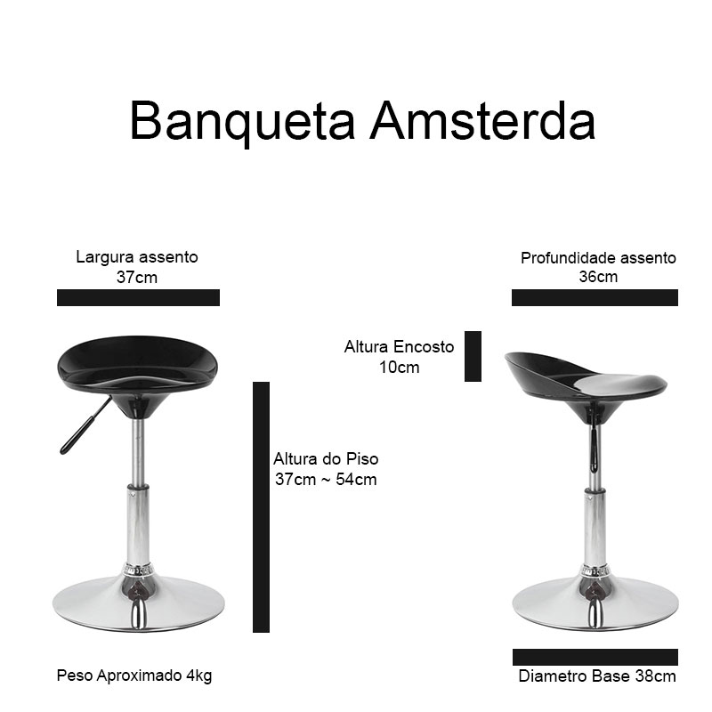 - Altura ao Piso mín/máx.: 37 cm/54 cm (Banqueta indicada para balcão com no maximo 85cm altura)
